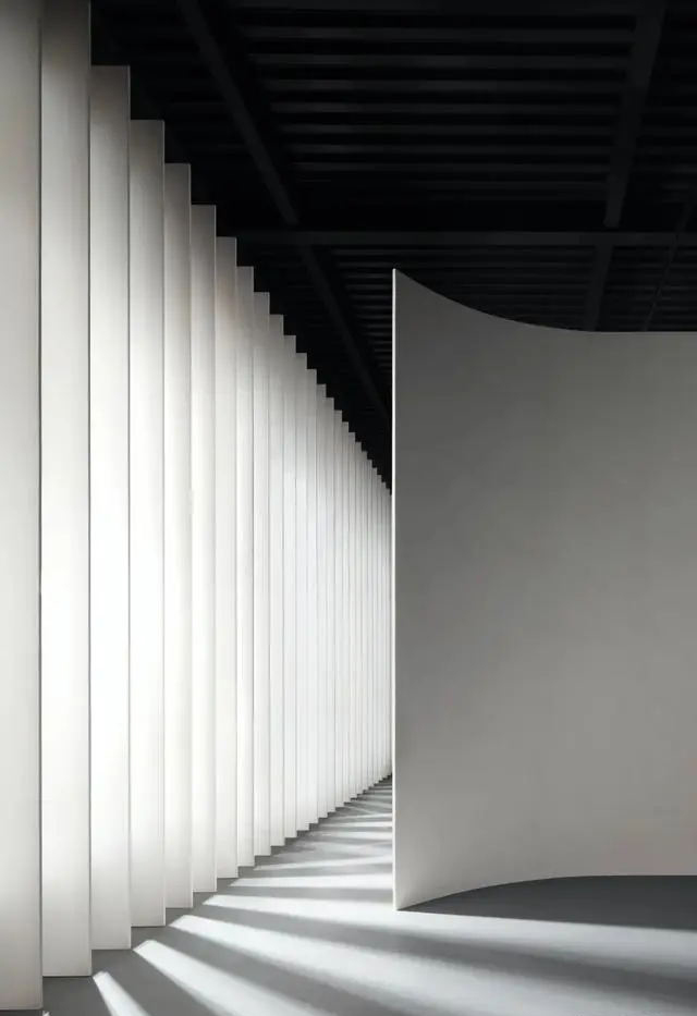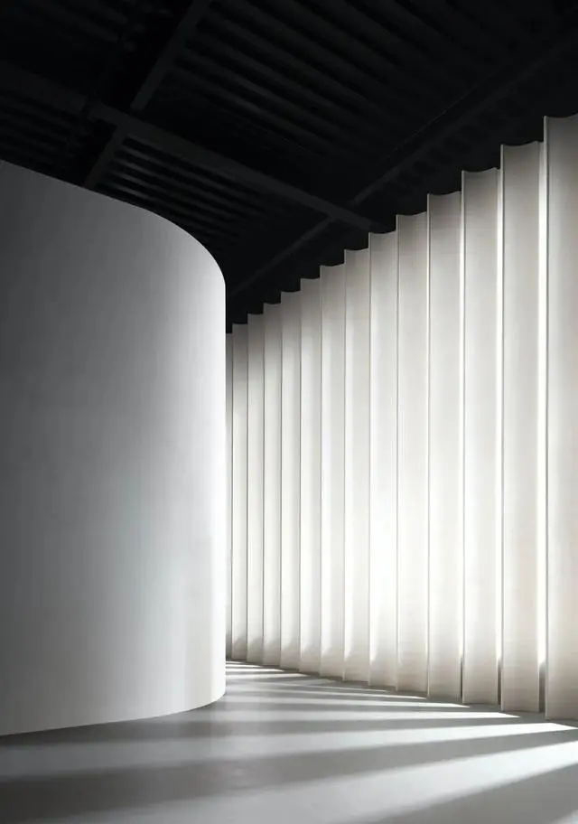 我們運用波浪形的墻壁來劃分空間,有利于引領(lǐng)看展人從一個空間移動到另一側(cè)空間。