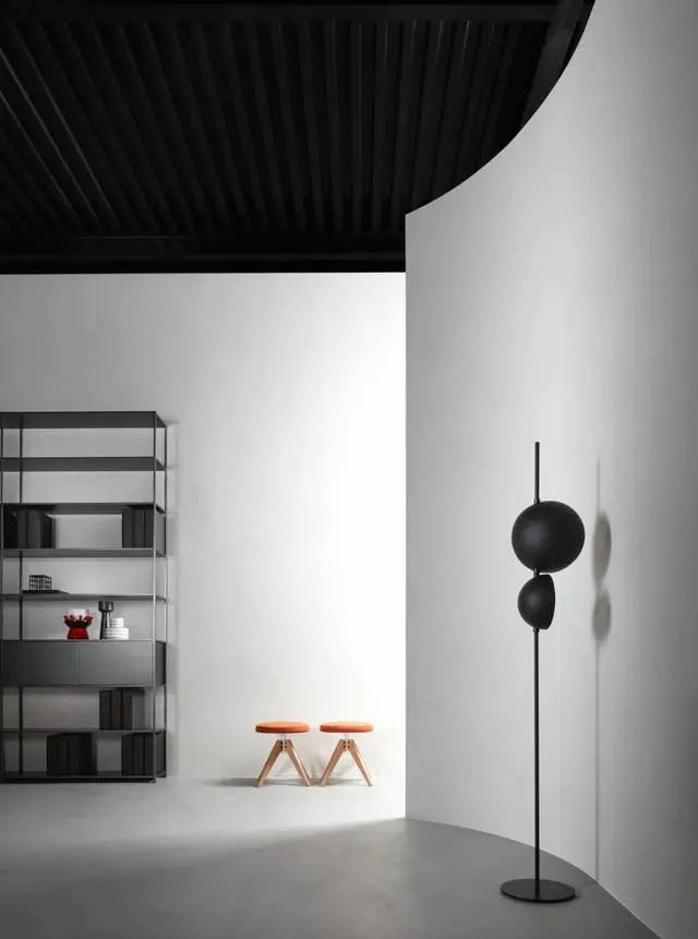 為了鼓勵參觀者觸摸家具并直接與家具本身互動,展示空間的設(shè)計符合人的維度,一條曲線環(huán)繞空間,將人的維度與代表 MDF Italia 的極簡線條聯(lián)系起來。