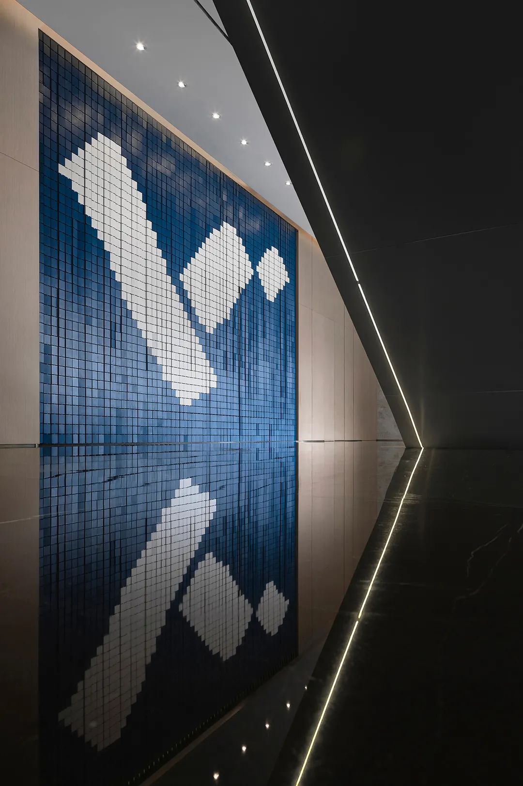 空間亮點在于,通過新媒體、交互藝術裝置、科技藝術裝置三大渠道,借由技術、工藝與美學的交織,讓人享受當下,感知未來,從而探索未來。在這一宏大的設計構想下,空間是對信息化時代的隱喻,“人們進入的銷售中心,我們將其擬作信息中心,設想來訪者是其中的信息源,以數字化狀態對信息中心進行探索,實現人與空間的新型交互。”