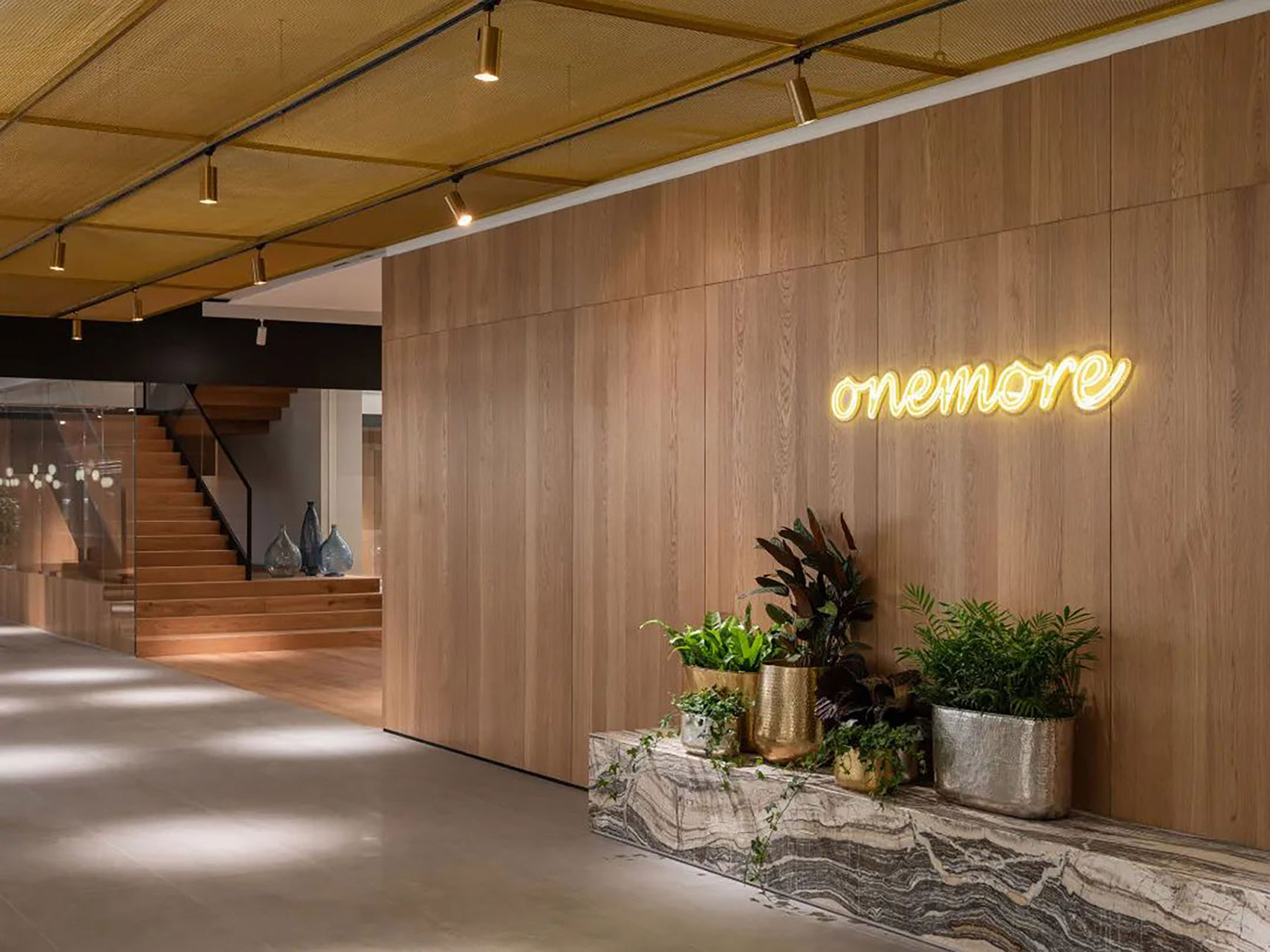 ONEMORE的總部辦公空間,不僅從空間營造上找到了能夠適應(yīng)當(dāng)下工作氛圍的方法,也為研究“聚集性空間的消解與轉(zhuǎn)化”提供了一種前瞻性的思考。將空間設(shè)計(jì)的重心放在了“尋找辦公歸屬感”和“多互動(dòng)的環(huán)保有氧空間上的設(shè)計(jì)理念上”,為品牌打造一個(gè)能激發(fā)更大協(xié)作意識(shí)和創(chuàng)造力的空間。
