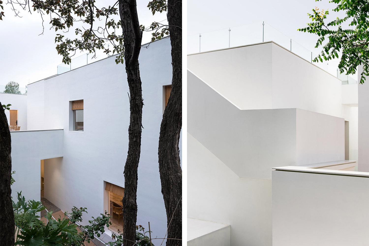 這些“橋”結合室外樓梯和功能用房的屋頂平臺既使每個體塊相互獨立、過渡,又可聯系相聚。“分與合”的生活狀態,通過建筑體塊分隔后的距離感與服務空間的整合得到回應。