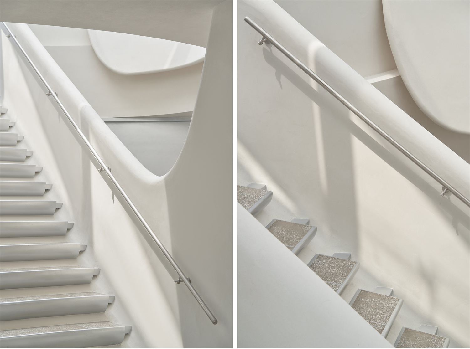 柔軟曲線的檐口大弧度,蔓延至行云流水般的樓梯造型,宛如貝殼,塑造親海洋生物屬性的未來藝術感,形成空間氣場的獨特性和差異性,契合拍攝服務與社媒傳播的瞬時場景記憶。