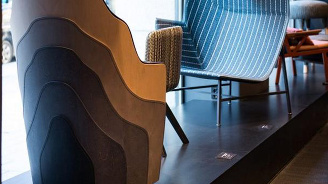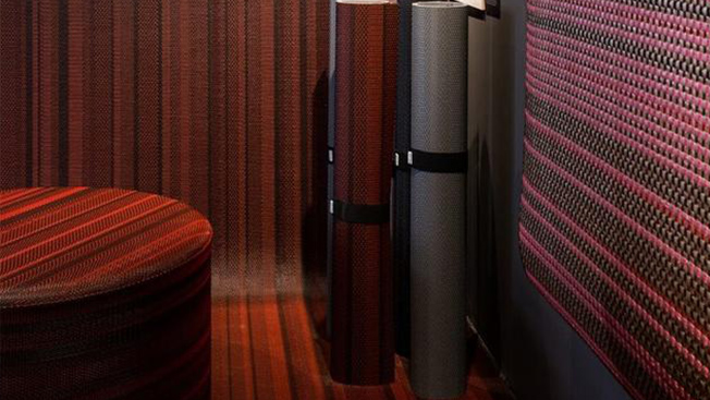 紋理和手工編織的效果,通過編織乙烯基材料結合了黑色、灰色、紅色和藍色等多種顏色,為空間創造出多種可能。