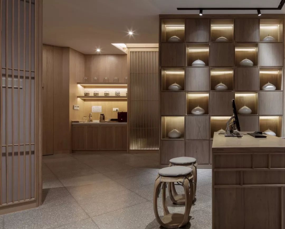 此外,整體溫暖的色調用以重組空間次序,更有豐富的細節為空間增添層次感,有質感的空間成就有態度、有溫度的中醫體驗。